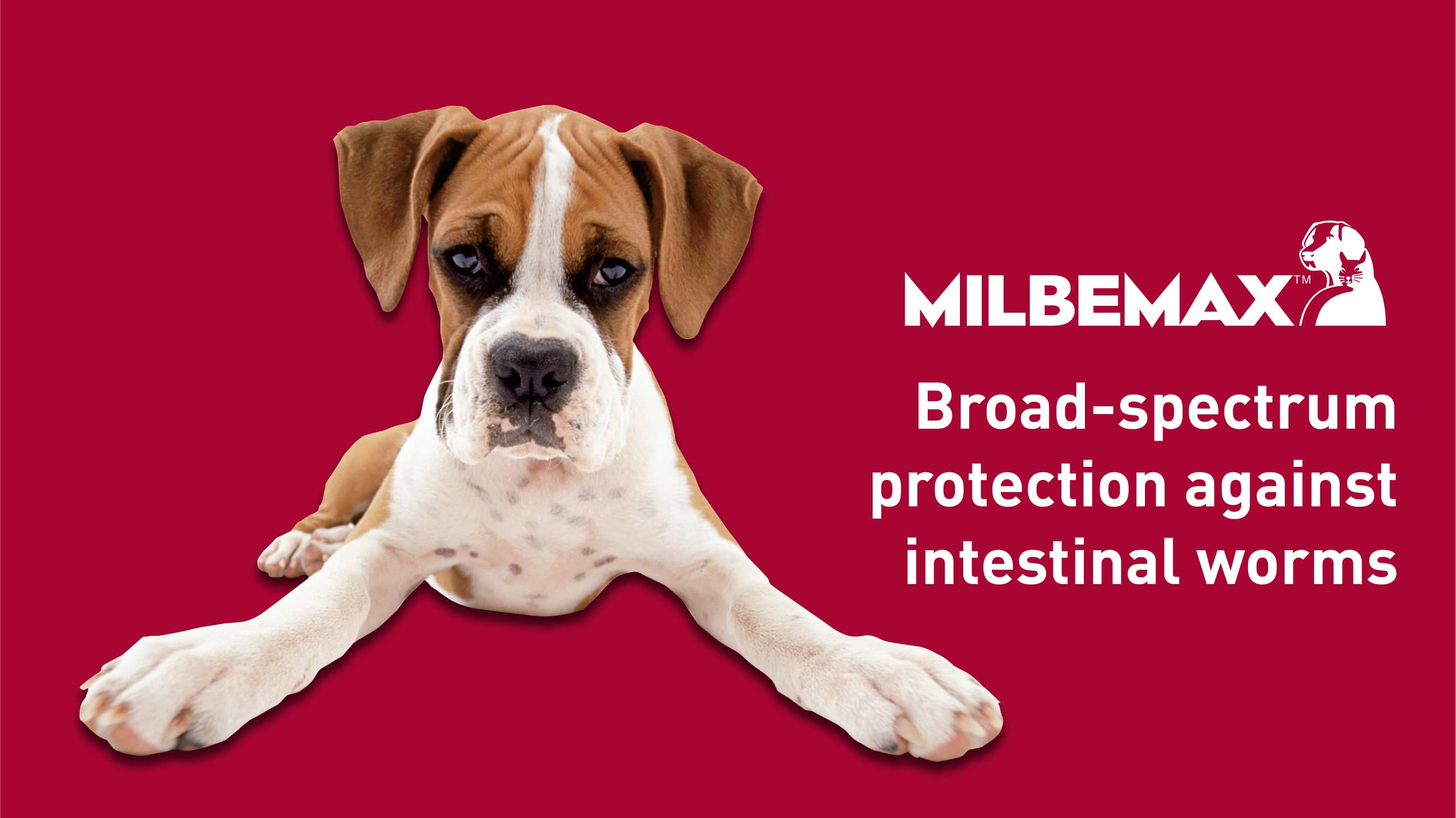 Milbemax delivers broad-spectrum protection for dogs and cats against common intestinal worms, including roundworm, hookworm†, whipworm* and tapeworm, in a small three-monthly tablet.